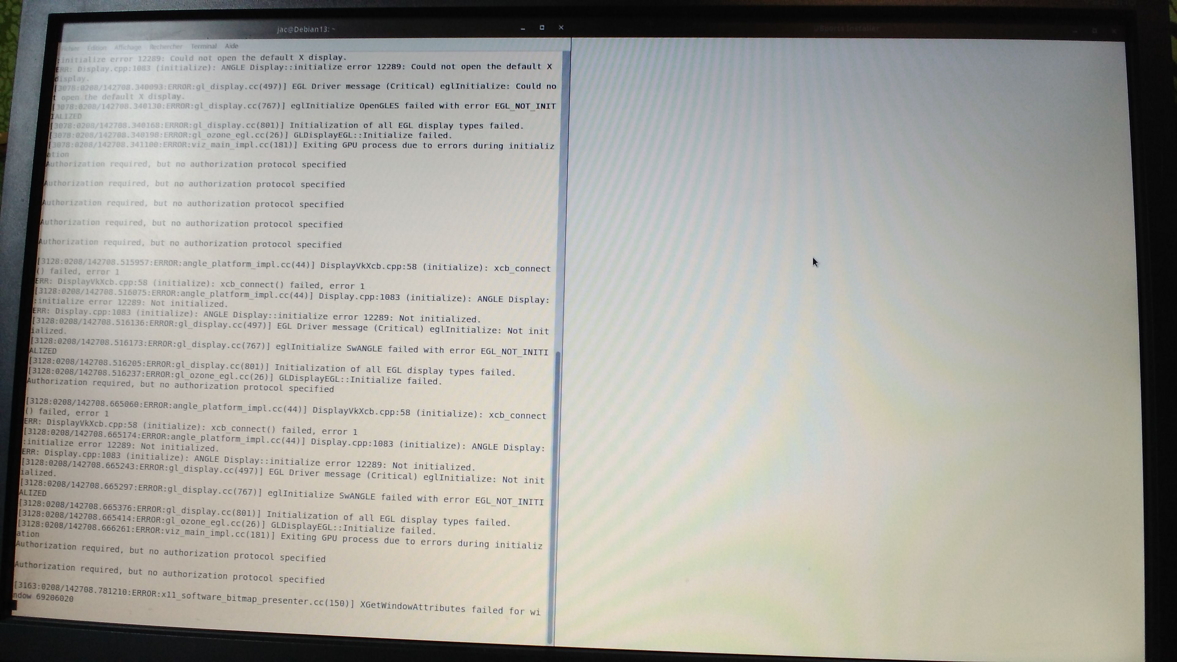 the package seems to be installed, but i can't launch the app (don't appear on the menu). so i try in commande line (sudo ubports-installer). the windows of the app lanch, but with nothing in. And the terminal indicate errors...